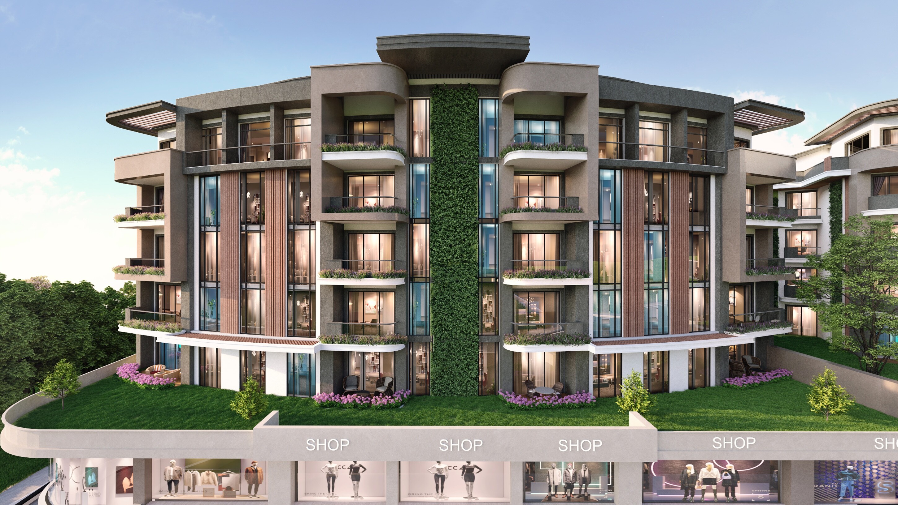 - IT CONSISTS OF 7 RESIDENTIAL BLOCKS, WITH A CAPACITY OF 208 RESIDENCES AND 20 SHOPS.